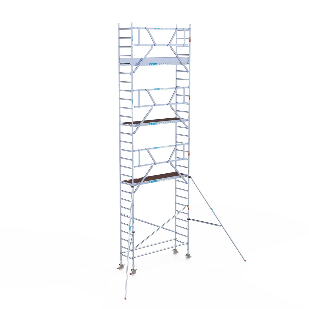 Deze steiger van hoogwaardig aluminium maakt elke klus eenvoudig. De rolsteiger heeft een breedte van 75 cm, een lengte van 250 cm en een werkhoogte van 9,2 meter. Ideaal voor werken tot circa 9 meter hoogte.