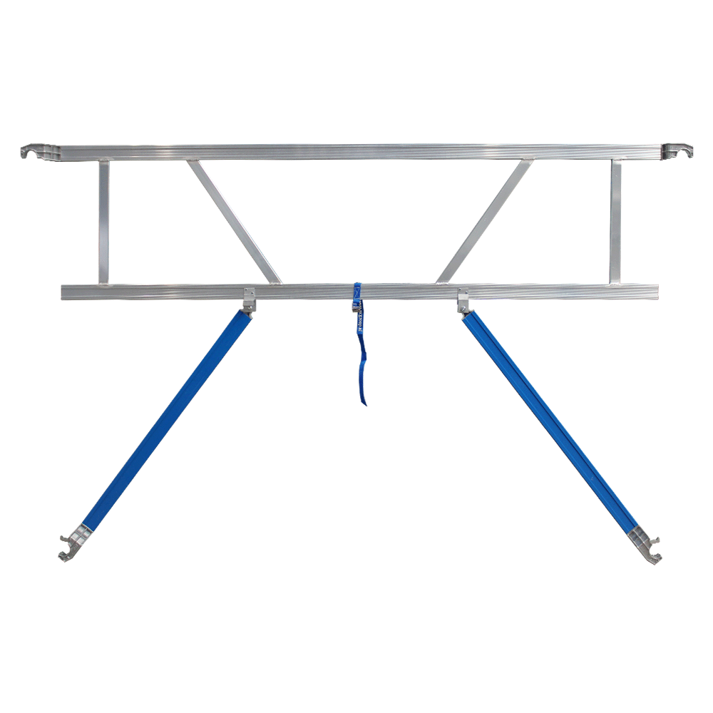 Om de veiligheid te waarborgen wanneer een steiger wordt opgebouwd, is het sinds 1 januari 2018 verplicht om randbeveiliging te plaatsen voordat een steigerplatform wordt betreden. Een voorloopleuning biedt uitkomst. Zowel aan de voor- als achterzijde van een professionele steiger moet een leuning worden gemonteerd. Deze aluminium voorloopleuning van Euroscaffold is eenvoudig te monteren en past op elke rolsteiger met een buisdikte van 50 mm en een platformlengte van 250 cm. De leuning is licht in gewicht en kan worden ingeklapt, zodat deze gemakkelijk te vervoeren is. Aan de standaard voorloopleuning kunt u klusmateriaal ophangen, zodat u minder vaak hoeft te bukken. Met het plaatsen van een voorloopleuning voldoet u aan de geldende veiligheidseisen voor professionals.