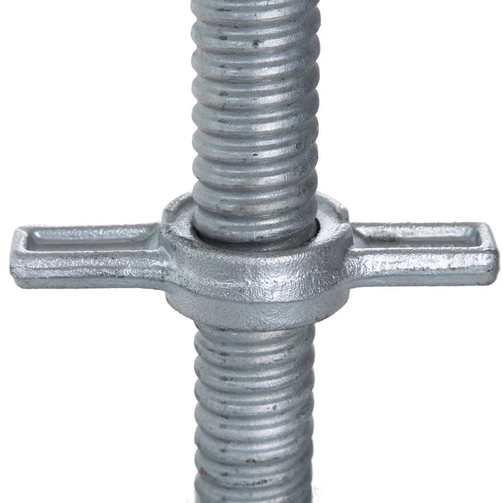 Stalen voetplaat met spindel van 100 cm en stelmoer, voor het op de juiste hoogte afstellen van uw steiger.