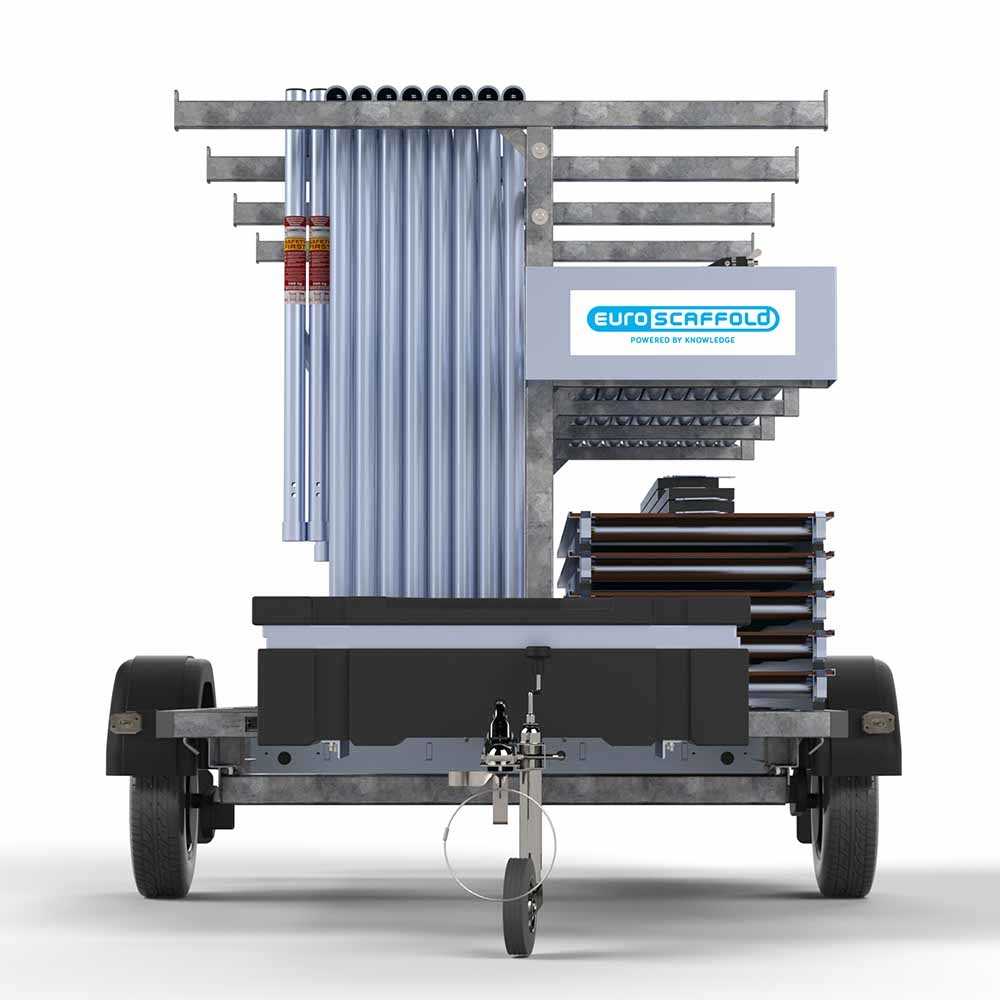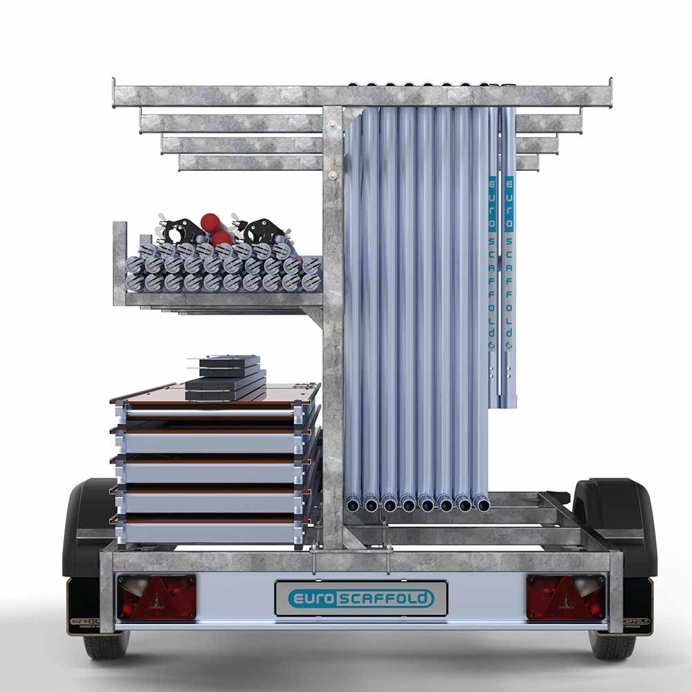 De Euroscaffold aanhanger heeft een afmeting van 251 cm x 132 cm en is het perfecte product om uw rolsteiger te vervoeren. Op deze aanhanger is plaats voor een rolsteiger met een werkhoogte van 14 m. Koppel deze aanhanger aan uw werkbus en u bent klaar voor de volgende klus!