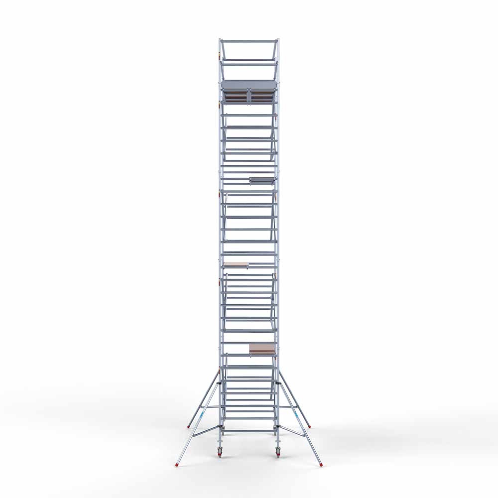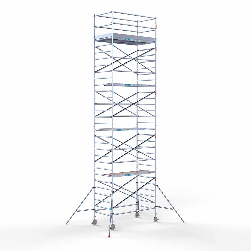 Naast deze aanhanger krijgt u er een brede aluminium rolsteiger bij voor een extra groot werkoppervlak. Deze steiger is met een breedte van 135 cm, een lengte van 250 cm en een werkhoogte van 10,2 m de meest geschikte rolsteiger voor het buiten klussen. Door een grotere platform van 120 cm (2x 60x250 cm) heeft u meer ruimte voor uw klus materiaal. Hierdoor staat de aluminium steiger ook steviger aan de grond. Met de kwaliteit van deze rolsteiger en de scherpe prijs gecombineerd is deze aluminium rolsteiger erg aantrekkelijk voor de professionele klussers. De aluminium rolsteiger is erg compact en makkelijk op en af te bouwen.