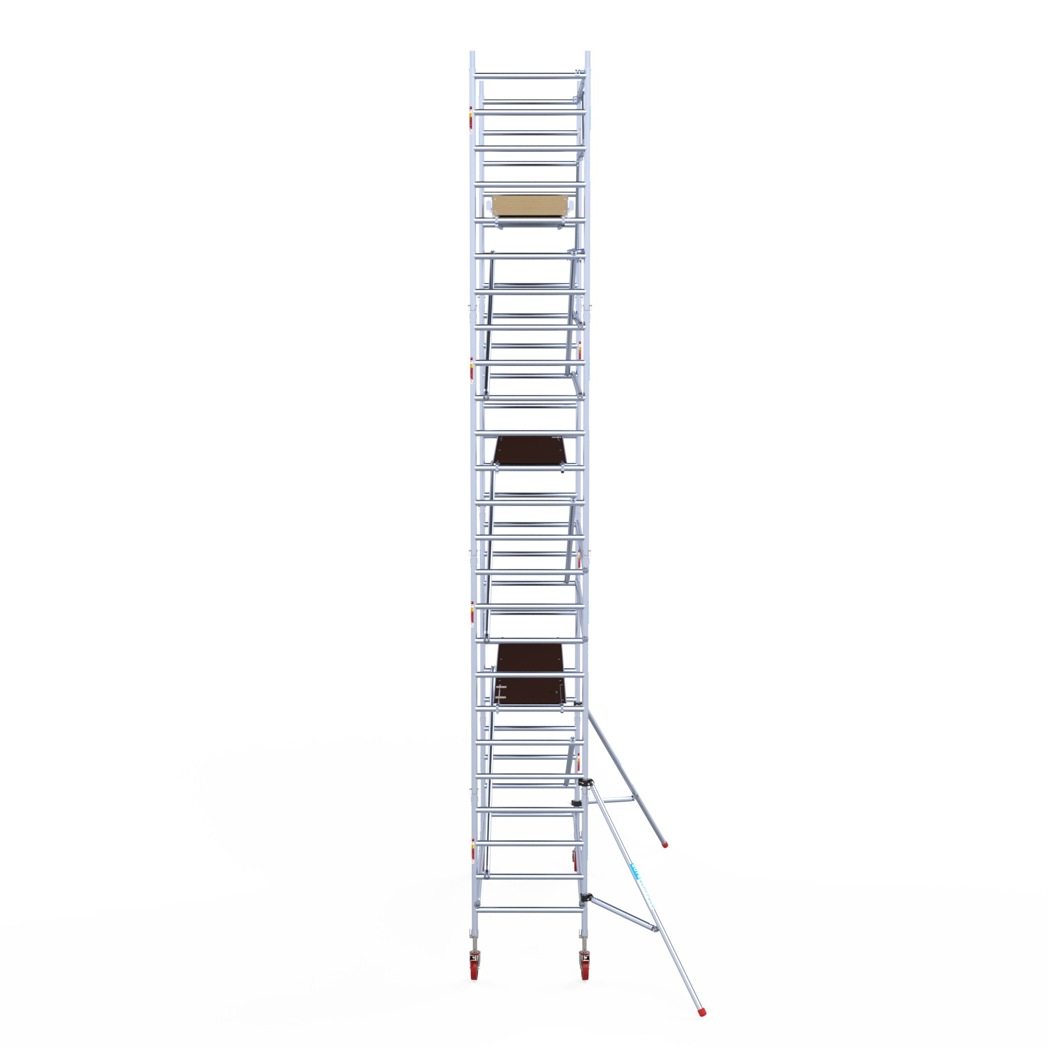 Op zoek naar zowel een aanhanger als een rolsteiger? Dan zit u bij Steigerverkoop.nl goed! Deze combideal beschikt over een rolsteiger met een werkhoogte van 8,2 meter, dit is een ideale werkhoogte wanneer u bijvoorbeeld werkzaamheden moet uitvoeren aan gevels, kozijnen of daken. De rolsteiger is Nederlands fabricaat, waarbij de productie plaats heeft gevonden in onze eigen fabriek te Krommenie. De rolsteiger is licht van gewicht maar is bestand tegen de heftigste weersomstandigheden. Met een breedte van 90 cm en een lengte van 305 cm, heeft u genoeg ruimte om met meerdere personen op de steiger te werken.
