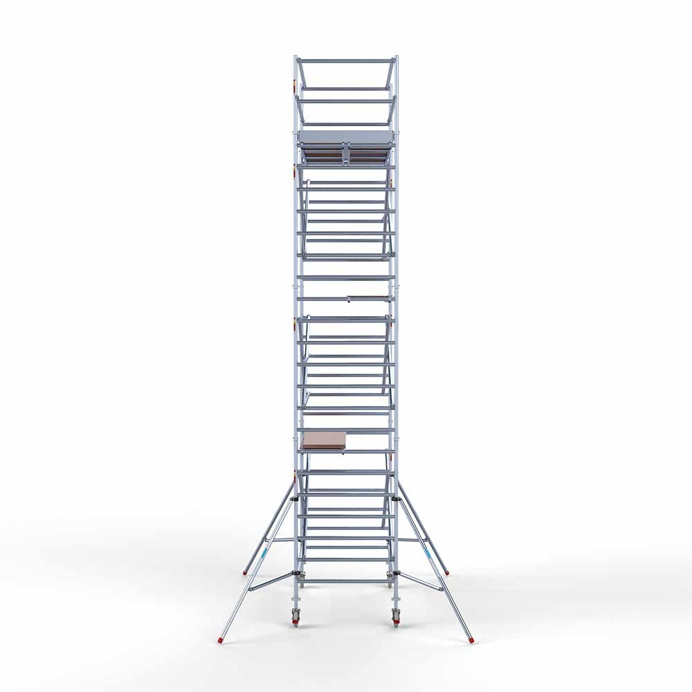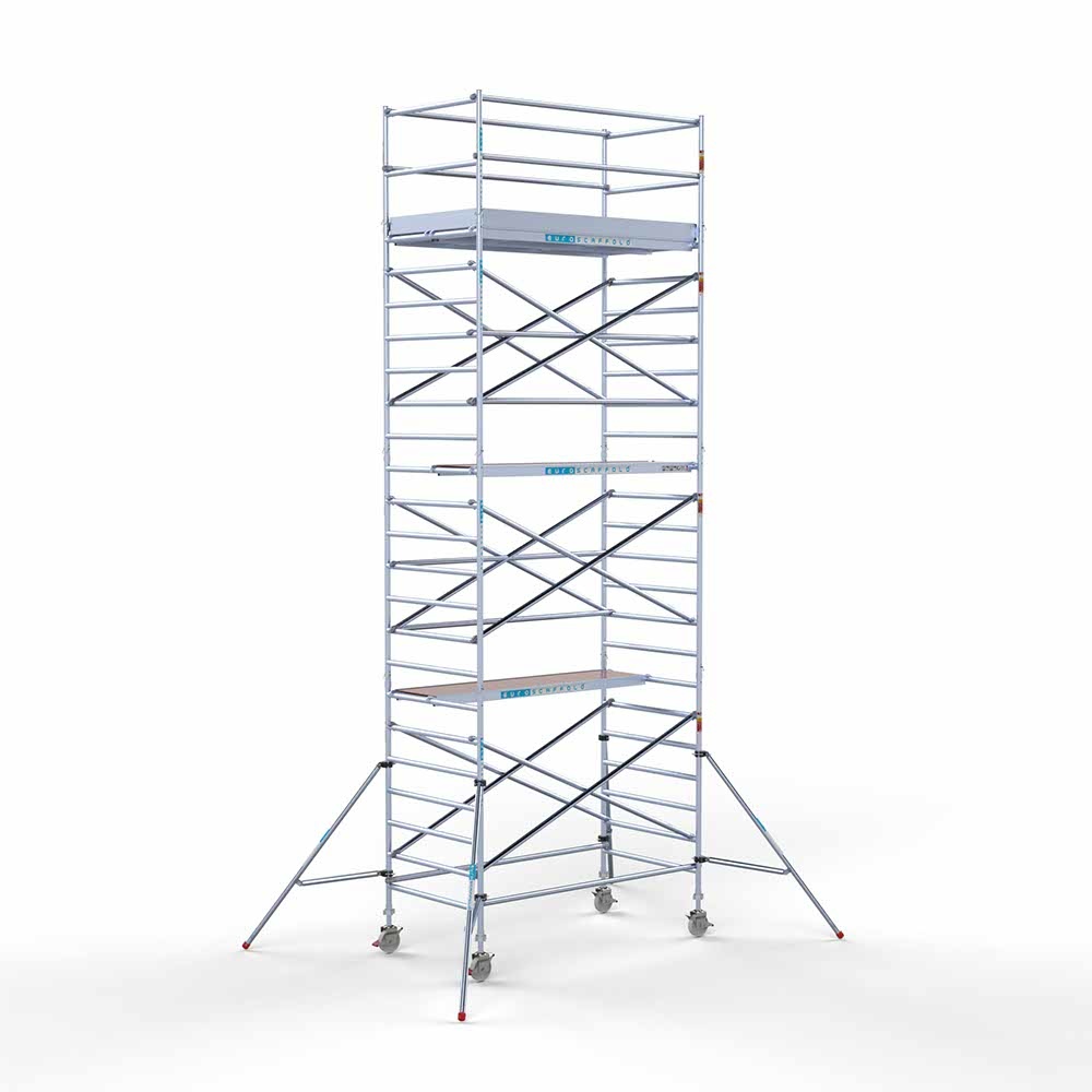 Afsluitbare Euroscaffold rolsteigeraanhanger 250 inclusief Standaard rolsteiger (professioneel) van 135x250 cm en 8,2 meter werkhoogte. De rolsteiger beschikt over carbon (lichtgewicht) steigervloeren, handig bij het opbouwen.