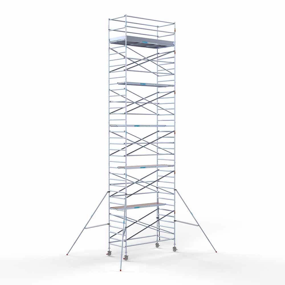 Afsluitbare Euroscaffold rolsteigeraanhanger 305 inclusief Standaard rolsteiger (professioneel) van 135x305 cm en 12,2 meter werkhoogte. De rolsteiger beschikt over carbon (lichtgewicht) steigervloeren, handig bij het opbouwen!