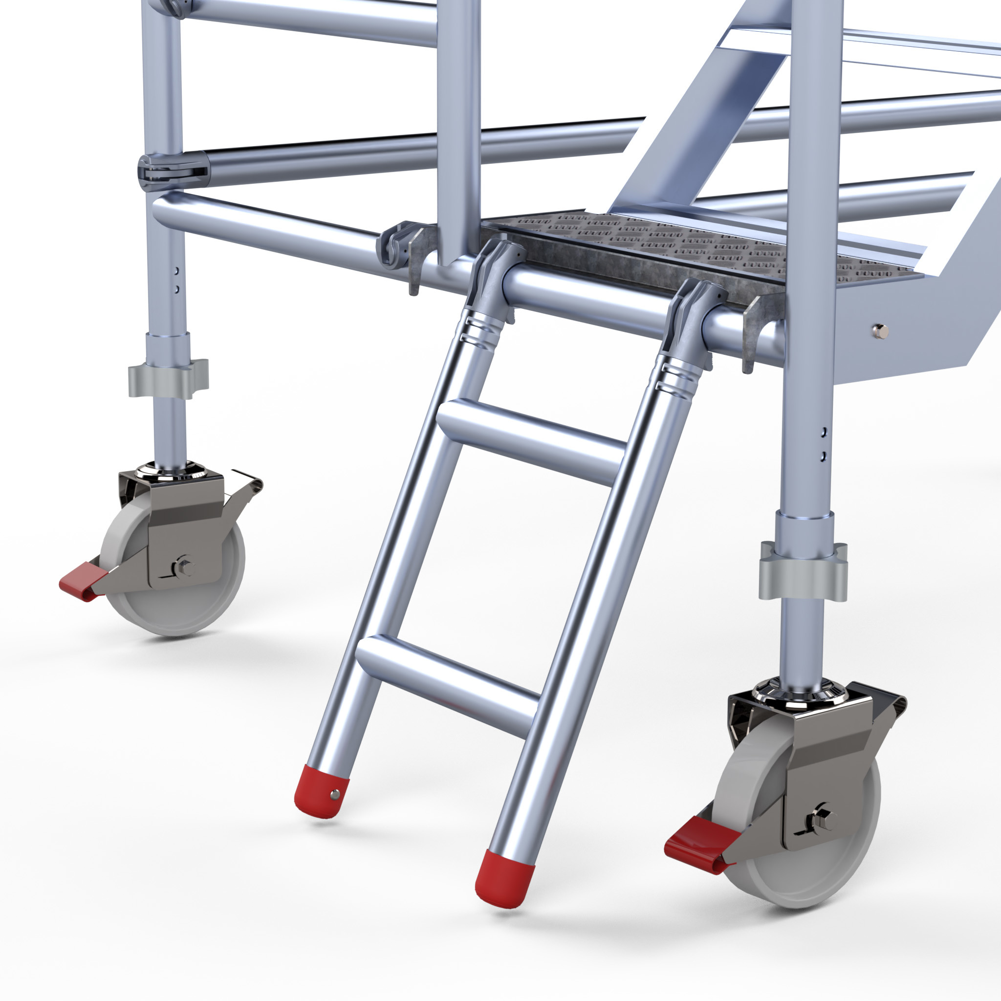 Veiligheid gaat een steeds belangrijkere rol spelen bij werken op hoogte. Dit begint natuurlijk al bij het op de steiger stappen. Het is makkelijker en veiliger om een trap op te lopen, dan via de sporen omhoog te klimmen. Zeker als er materialen of gereedschappen mee omhoog naar het platform moeten.