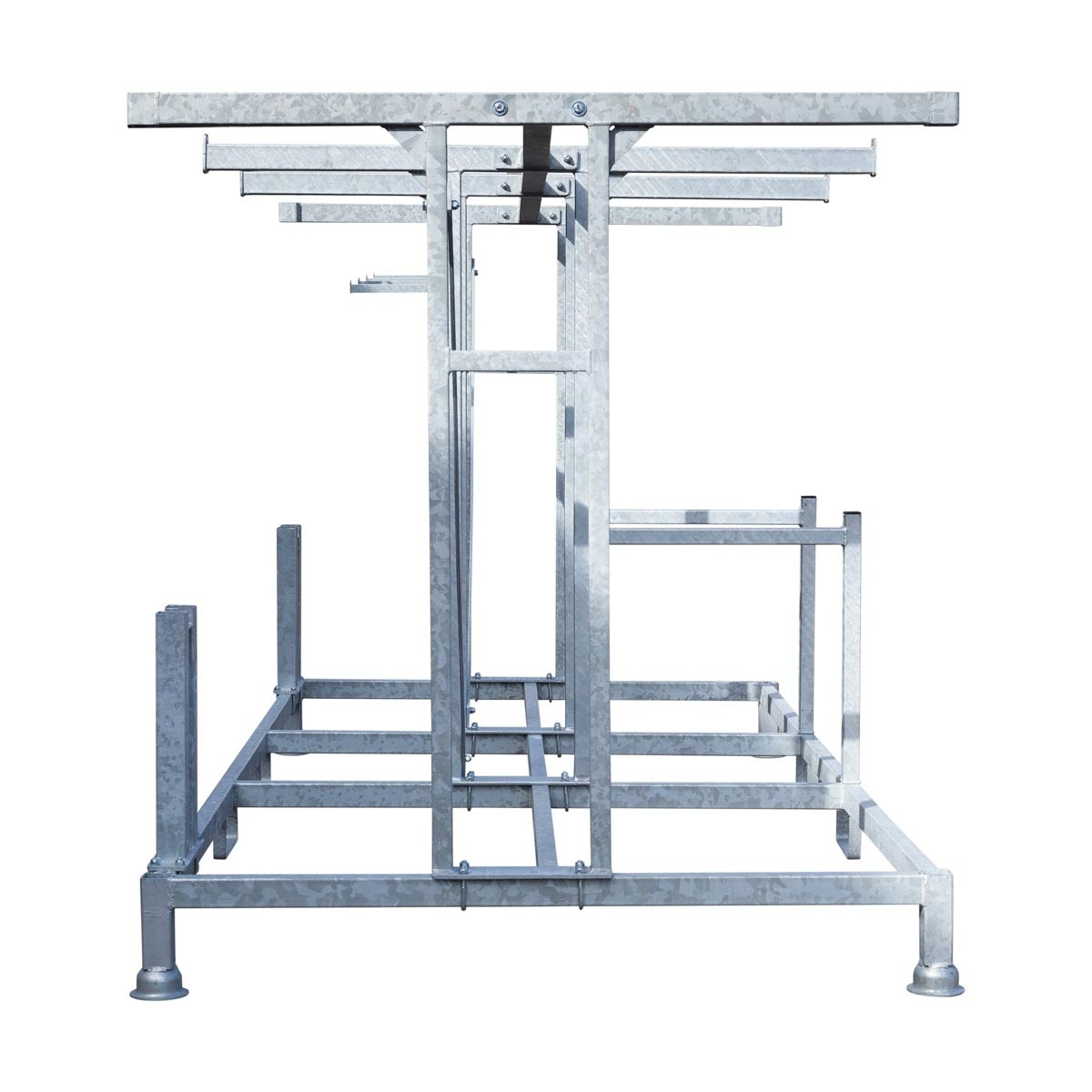 De trappentorenbok is een robuuste en gebruiksvriendelijke transportbok, speciaal ontworpen voor het veilig en overzichtelijk vervoeren van een trappentoren. De bok zorgt ervoor dat alle onderdelen, zoals de steigertrappen en leuningen, stevig en compact worden opgeborgen. Hierdoor wordt schade tijdens transport voorkomen en heeft u altijd direct zicht of uw steiger compleet is.