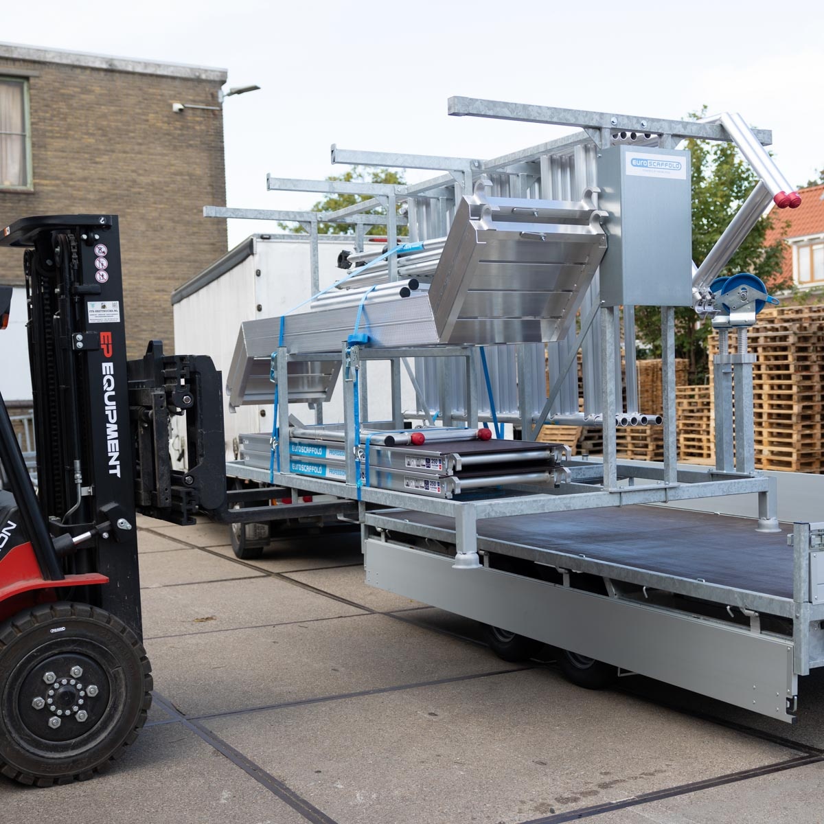 - Geschikt voor transport van een trappentoren tot 14 meter werkhoogte