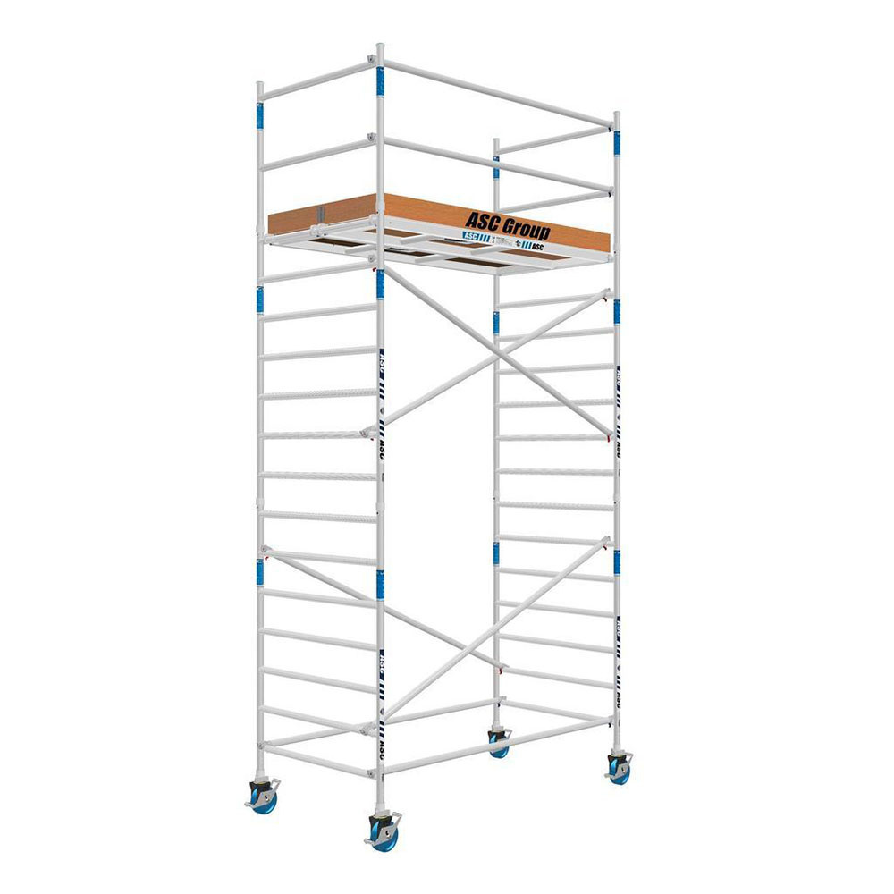 Kies de juiste werkhoogte voor uw rolsteiger. Werkhoogte wordt als volgt berekend: de hoogte van het hoogste platform plus de gemiddelde hoogte van de handen als een persoon met omhoog gestrekte armen werkt (hiervoor rekenen we 2 meter). De formule om de werkhoogte te berekenen is dus: platformhoogte + 2 meter.