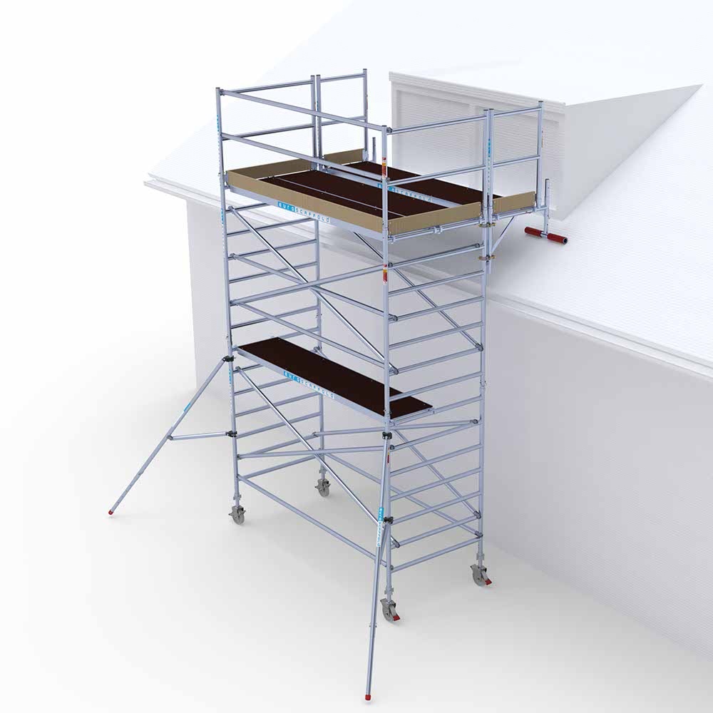 Deze uitwijkconsole 75x305 cm compleet van Euroscaffold wordt geleverd met leuningframes, schoren en platformen. Met een uitwijkconsole maakt u een veilige uitbouw aan een rolsteiger voor onderhoud aan lastig te bereiken plekken, zoals een dakkapel. De uitwijksteiger is toepasbaar op bijna elke dakhelling. Het omhulsel van het T-stuk aan de uiteindes van de console bevat een kunststof bescherming, zodat het dak niet beschadigd raakt. De uitwijkconsole is verstelbaar in de breedte en eenvoudig te plaatsen op alle dak- of rolsteigers met een buisdikte van 50mm.