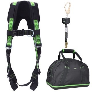 - Deze set bestaat uit het standaard harnas, een valstopblok en een polyester opbergtas.