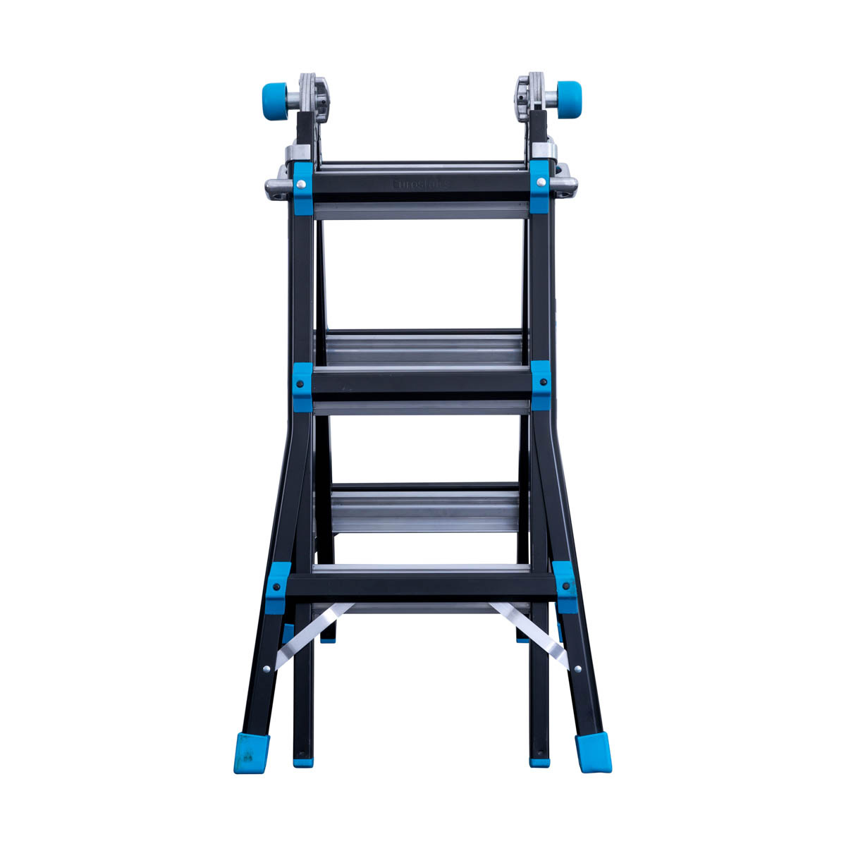 De nummer 1 ladders en onmisbaar voor elke (semi-)professionele klusser. De ladder is multifunctioneel inzetbaar voor elke klus vanwege de 5 basisstanden (A-stand, rechte ladder, trap, muur- en steigerstand) en 33 posities waarin de ladder te plaatsen is.