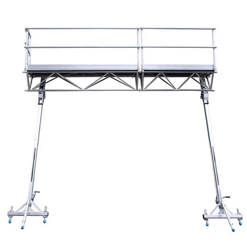 Kies de juiste werkhoogte voor uw rolsteiger. Werkhoogte wordt als volgt berekend: de hoogte van het hoogste platform plus de gemiddelde hoogte van de handen als een persoon met omhoog gestrekte armen werkt (hiervoor rekenen we 2 meter). De formule om de werkhoogte te berekenen is dus: platformhoogte + 2 meter.